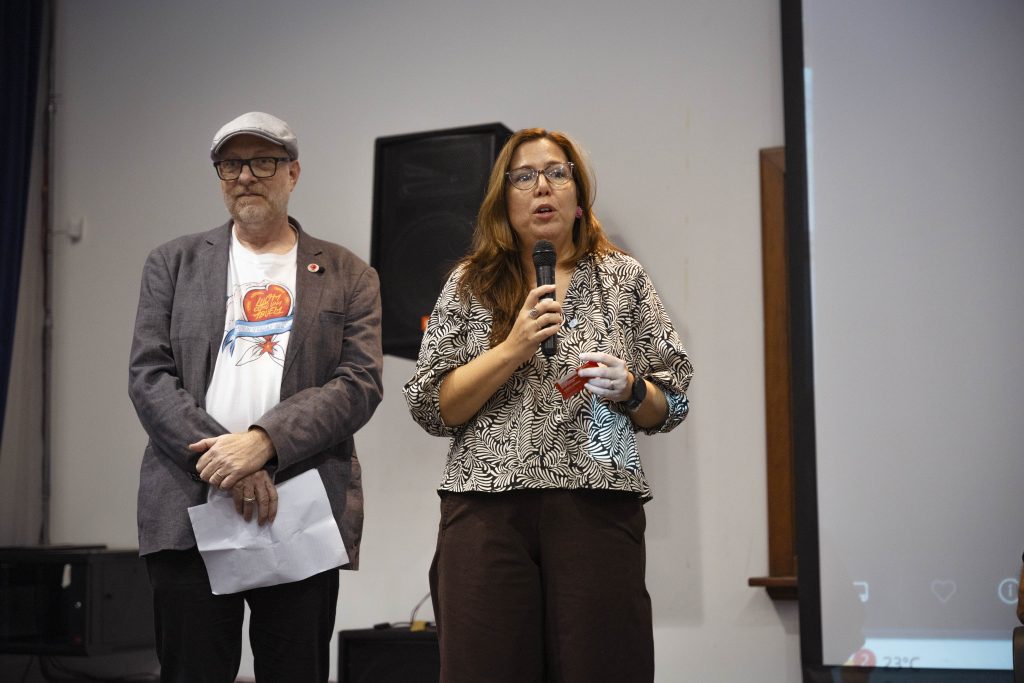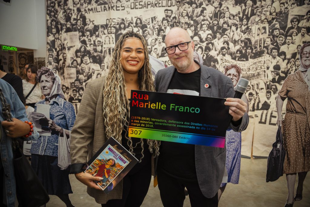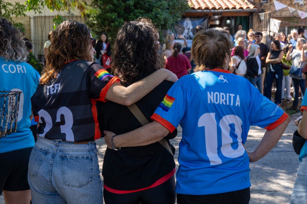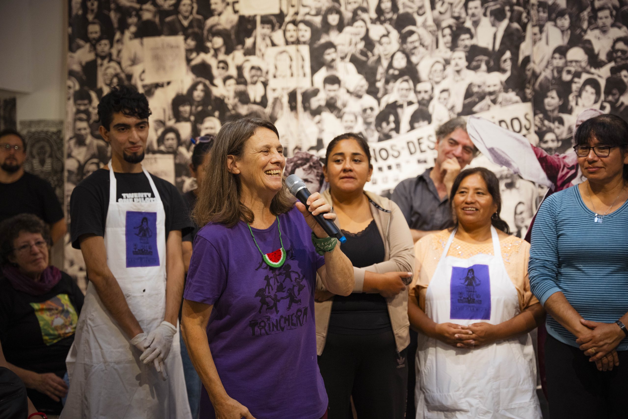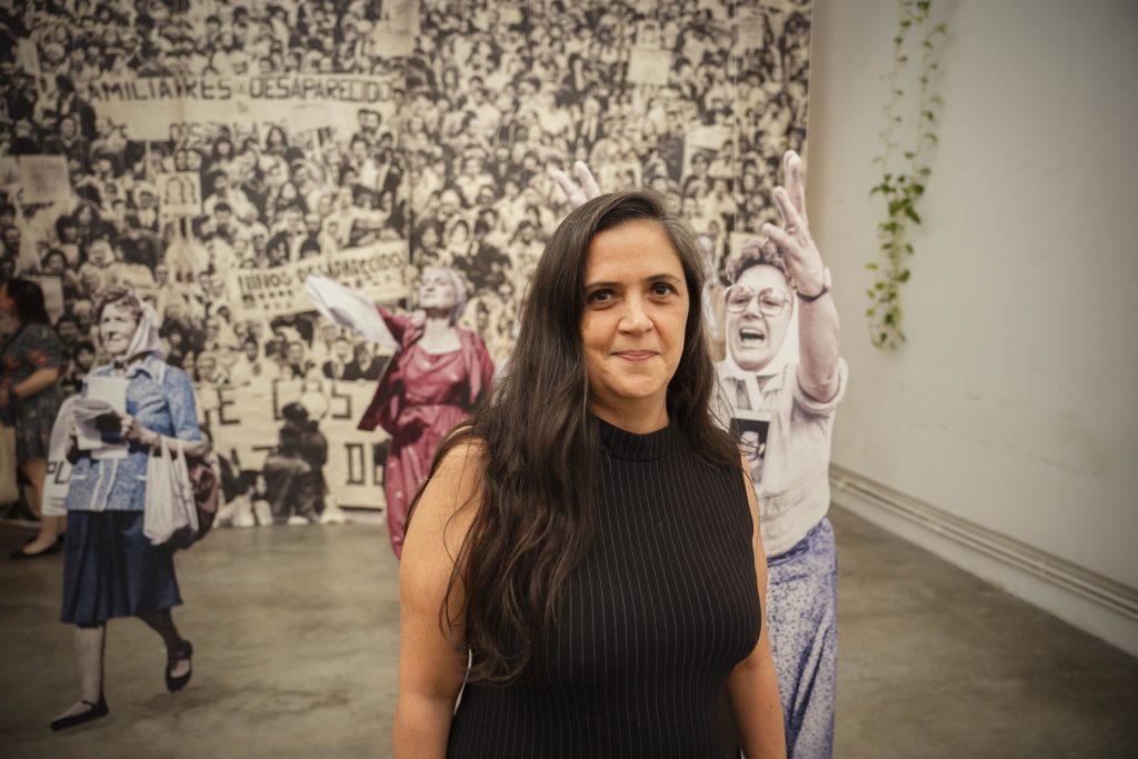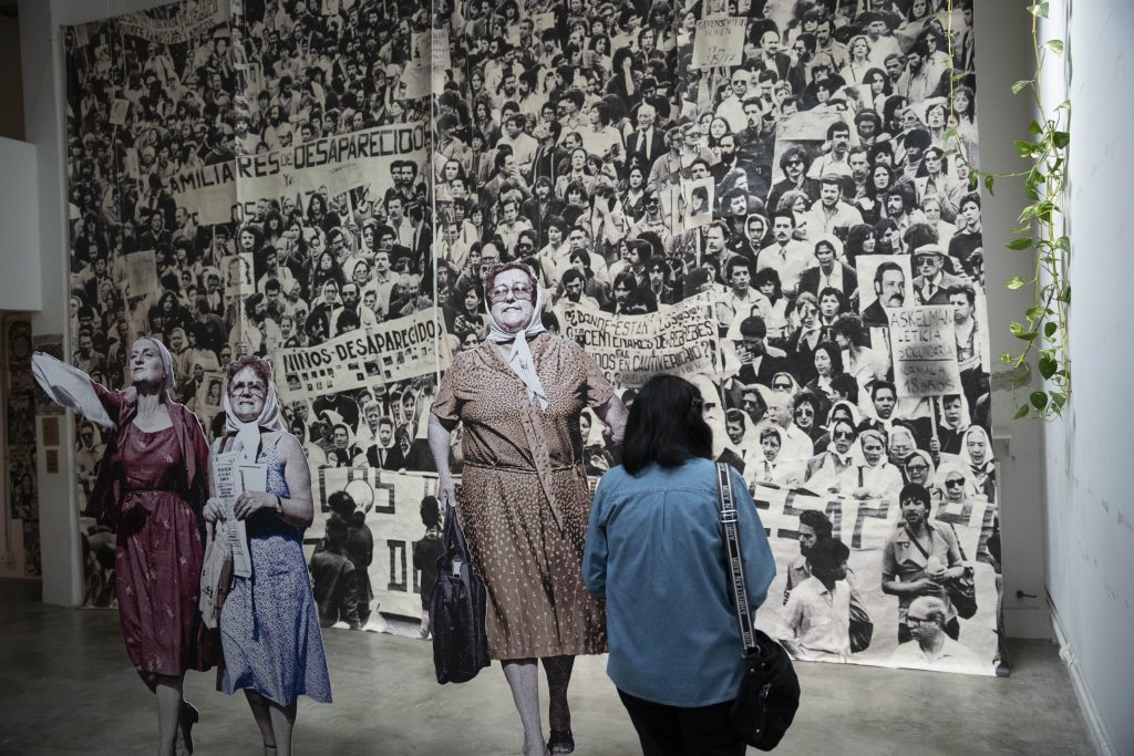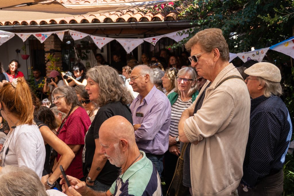 A 50 años del golpe, inauguramos en nuestra sede la muestra “MÁS QUE NUNCA: ¡DEMOCRACIA!”. La instalación reunió archivos de Nora Cortiñas por Monada Nómadas y Norita Film, bordado colectivo de la Cooperativa Gráfica La Voz de la Mujer de FOB A y un adelanto documental del Mapa de la Policía. Participaron de la apertura Torge Löding, Golschan Khun-Jush (Embajada Alemana) y Wolfgang Kaleck (ECCHR).