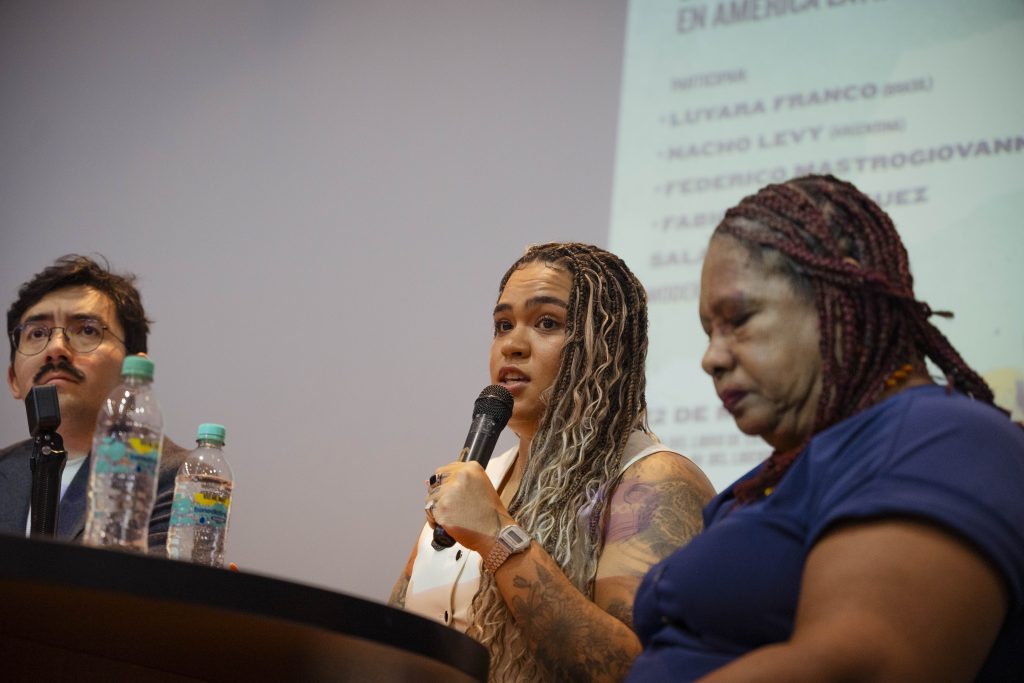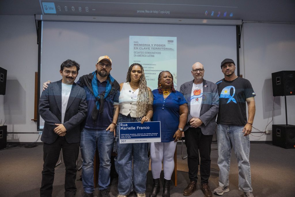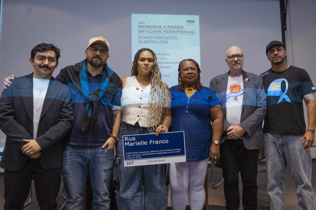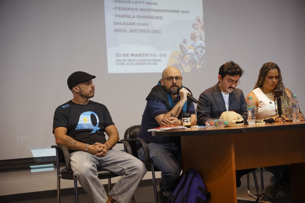 En el marco de la Feria del Libro de DDHH en la Ex ESMA, realizamos el panel “Memoria y Poder en Clave Territorial”. Debatieron sobre los desafíos democráticos de la región Luyara Franco (Brasil), Nacho Levy (Argentina), Federico Mastrogiovanni (México) y Fabiola Rodríguez Salazar (Colombia). El encuentro fue moderado por Javier Pineda (Chile) y contó con las palabras de Claudia Poblete (Abuelas de Plaza de Mayo) y Torge Löding (FRL).