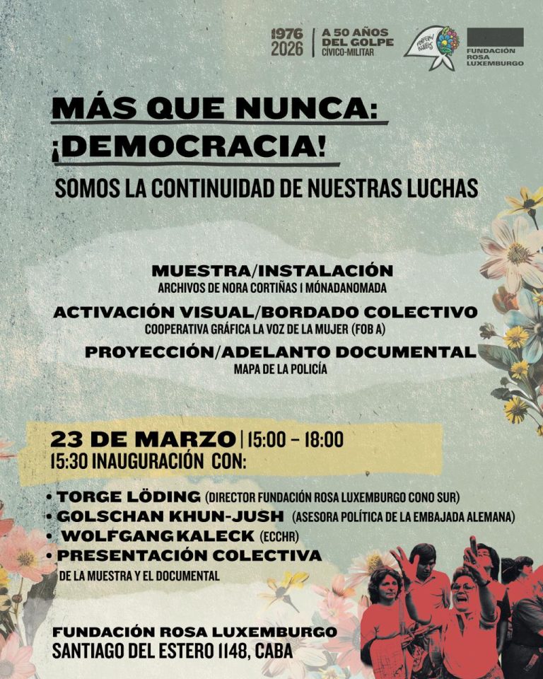 Desde la Fundación Rosa Luxemburgo, entre el 22 y el 24 de marzo de 2026, en articulación con movimientos populares y organismos de derechos humanos, impulsaremos…